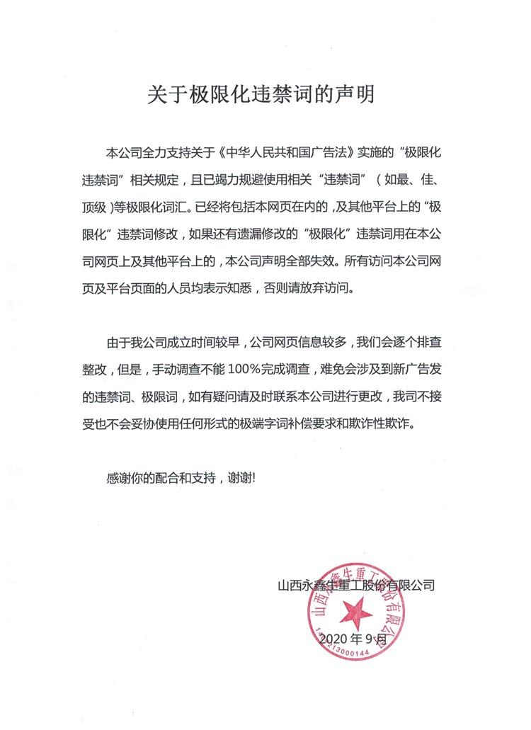 關(guān)于極限化違禁詞的聲明 - 山西永鑫生重工股份有限公司